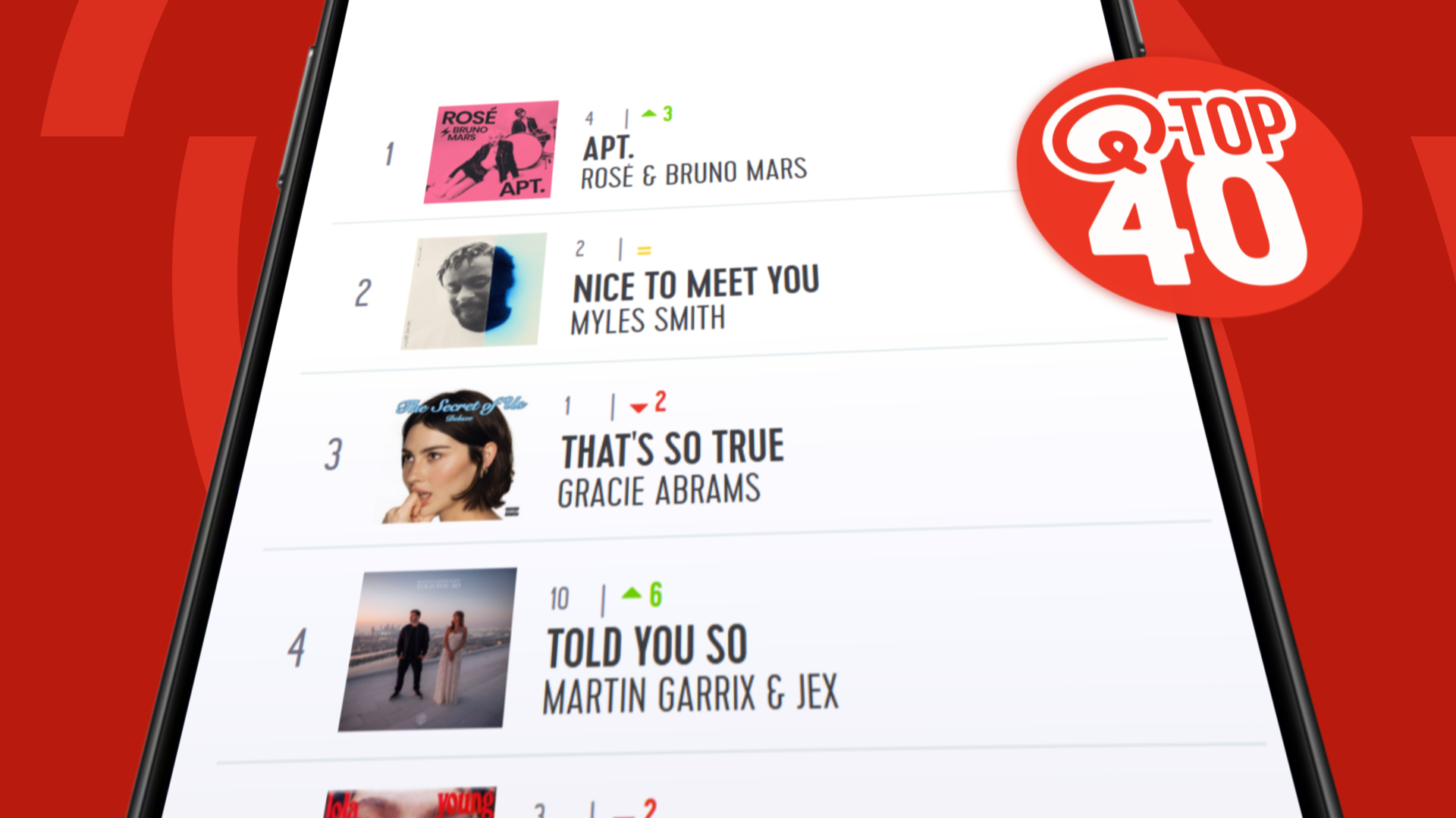 Het is vrijdagmiddag, iedereen weet wat dat betekent. De Q-Music top 40 begint. Allen daarheen.